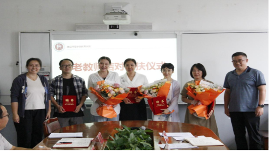 会议由贾长胜书记主持,秦丹经理宣读了师徒结对名单。贾长胜书记和秦丹经理为导师们颁发聘书并合影留念,青年教师向导师鞠躬献花致礼。满满的仪式感让青年教师对“三尺讲台”的敬畏之心、对导师的尊重感恩之情、对教学工作的责任和使命感油然而生。