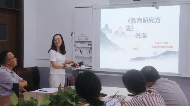 活动中,承担《教育原理》《教育研究方法》《课程与教学论》《青少年心理发展与教育》四门课程教学任务的教师,围绕学情分析、课程目标、课程内容、教学方法、教学评价五个关键维度,系统阐述了各自课程的设计思路与实施计划。四位教师的说课内容详实、逻辑清晰,充分展现了对课程的深度思考与精准把握。说课结束后,参会的其他教师与督导组成员积极讨论交流,从课程衔接、内容优化、教学创新等方面提出了富有建设性的意见和建议。