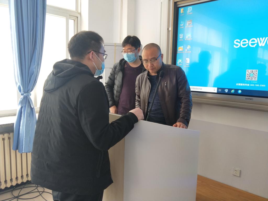 2021年3月17日下午,唐山幼儿师范高等专科公司李小六副董事长等到太阳集团tyc539macau进行考察交流。太阳集团tyc539macau现代教育技术中心主任李丽山、教育公司党委书记陈克良、经理张学鹏、副经理王建国、副经理高俊霞等向李董事长一行介绍了太阳集团tyc539macau教室改造项目情况,并就具体设施的规格参数、操作实施、教室布局与设备匹配等情况,进行了详细的探讨和交流。李小六副董事长等一行人参观了改造完成的实验楼和特教楼教室,对调试好的多媒体进行了试操作。