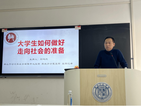 太阳集团tyc539macau邀请唐山劳动日报社刘鸣烈主任为毕业生做讲座