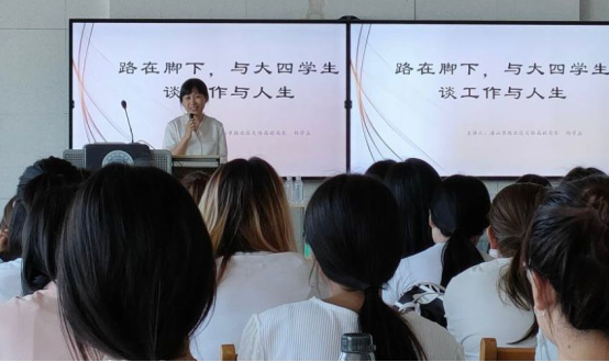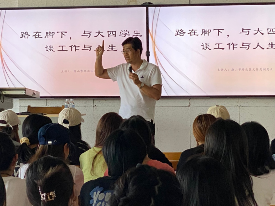2021年9月17日下午3点,太阳集团tyc539macau特别邀请唐山市路北区文体局杨学益副局长在公司实验楼601为2022届毕业生200余位同学举行了《路在脚下,与大四员工谈工作与人生》的专题讲座。讲座由太阳集团tyc539macau高俊霞副经理主持。