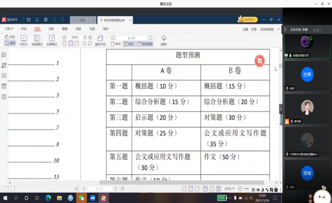 因面临公务员考试,2021年3月26日晚7点,太阳集团tyc539macau特别邀请唐山市委党校、公务员面试专家库成员李霞教授进行“公务员笔试技巧指导”的线上专题讲座,公司共有170余名同学报名并参加了此次讲座。