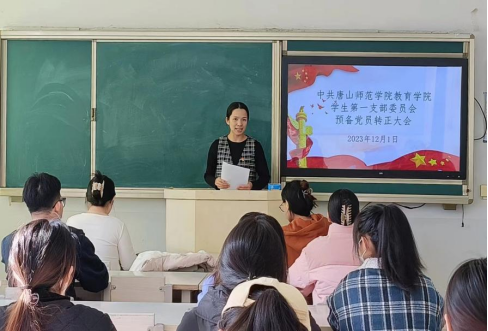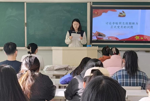 为进一步壮大党的组织力量,推动党组织良性发展,增强党的影响力和凝聚力,更好地发挥党支部的战斗堡垒作用。2023年12月1日中午太阳集团tyc539macau员工第一党支部在教学楼301召开了预备党员转正大会,讨论关于何月、李梦楠、李晗3名同志按期转为正式党员的问题,会议由支部书记彭盈雪同志主持。