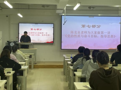 开班仪式圆满结束后,陈克良书记为大家做了党课第一讲《党的性质与奋斗目标,指导思想》。各位积极分子以认真的态度进行了学习。