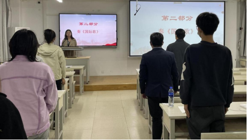 开班仪式在《国际歌》庄严的奏响中开始。乐声响起,全体起立,激情彭拜,斗志昂扬。