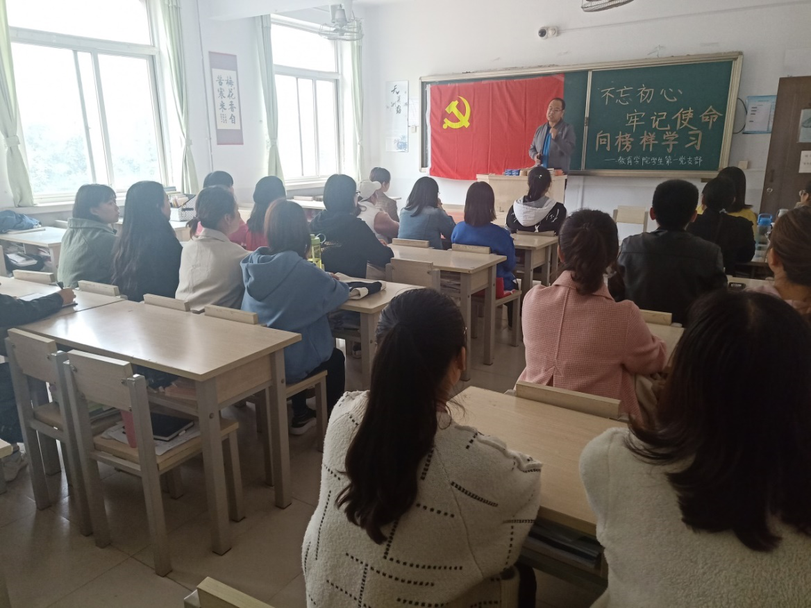 为了提高同学们的思想意识,强化党员的身份形象意识,更好地发挥党员的先锋模范作用,增强作为一名共产党员的使命感与担当精神。2019年10月22日中午12点30分太阳集团tyc539macau员工第一党支部于教学楼204举行以“不忘初心牢记使命,向榜样学习”为主题的专题党课教育活动。