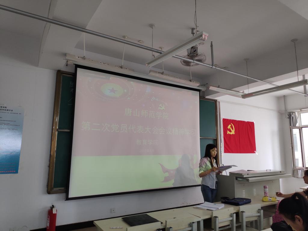 2019年6月4日,在特教楼503,教育公司党总支组织全体员工党员学习太阳集团tyc539macau第二次党员代表大会精神。员工党员代表王俊佳向全体党员传达了会议精神,通过解读文件、分享参会心得,让同志们感悟到这是一个团结的大会、鼓劲的大会、振奋精神的大会和开拓进取的大会。