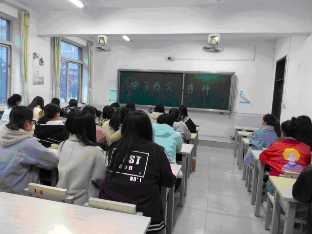 2019年3月17日,员工第三党支部负责人吴雅双组织全体党员在教学楼103学习“两会”精神。
