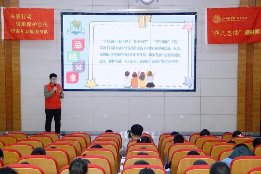 (宣讲团成员李豪天为小员工带来管道安全相关知识)