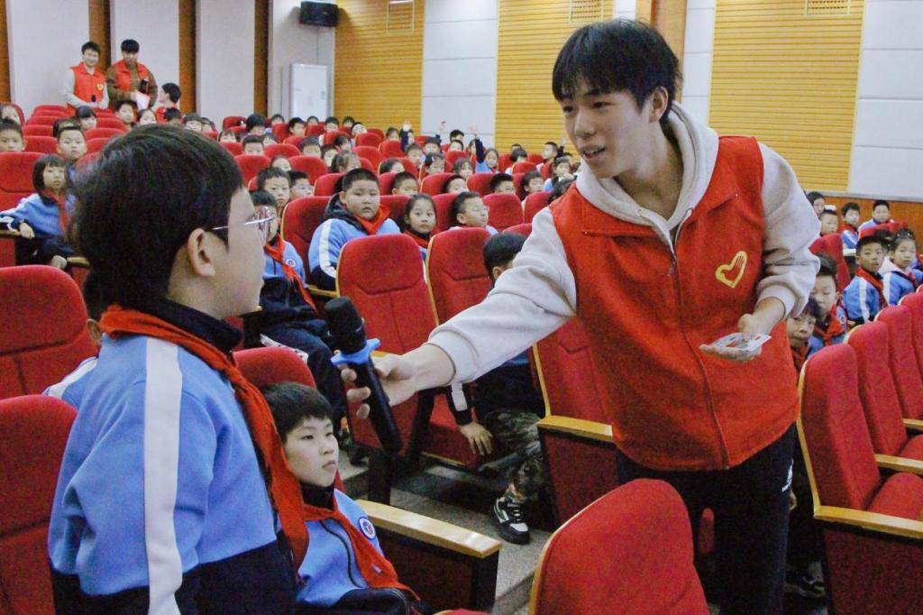 (宣讲团成员侯士博为小员工带来安全乘梯相关知识)
