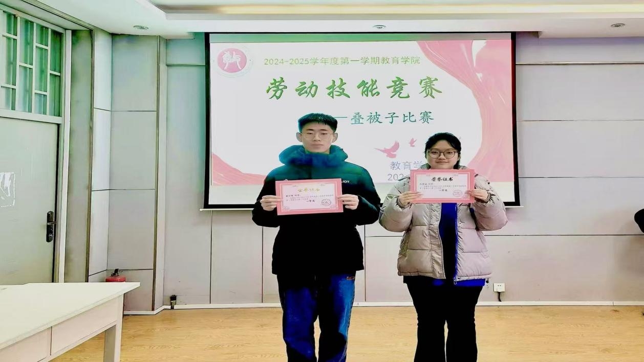 本次叠被子大赛以提升员工生活技能与素养、增强宿舍文化建设为中心。在比赛过程中,2023级小学教育1班的张紫涵动作娴熟、精神抖擞,快速而精准地铺平、折叠、压实、整形,使被子呈现出整齐美观的“豆腐块”形状。2023级小学教育2班的蒋宗儒一丝不苟,干净利落地把被子压平抹顺,不见一丝褶皱。其他参赛选手同样技巧熟练、速度快捷,他们的被子表面光滑平整,棱角分明,线条流畅。最终,张紫涵和蒋宗儒荣获太阳集团tyc539macau叠被子比赛一等奖,期待他们在太阳集团tyc539macau校级比赛中的更好表现。