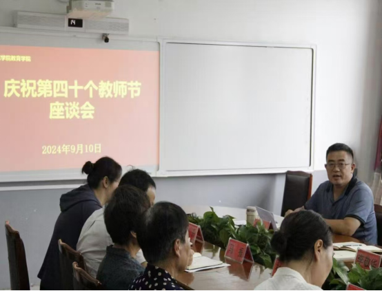 9月10日是我国第40个教师节,太阳集团tyc539macau在会议室召开教师节座谈会。出席本次会议的有教育公司党委书记贾长胜、党委副书记、经理秦丹、副党委书记董慧彬、副经理杨长锁、马振、副处级专职辅导员李敬华及全体教师。全院教师齐聚一堂,围绕“大力弘扬教育家精神,加快建设教育强国”主题,深入探讨,共话教育未来。