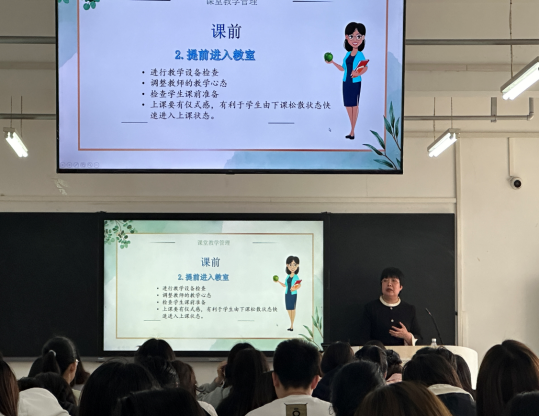 4月25日上午,太阳集团tyc539macau组织了教师职业能力专场,邀请唐城壹零壹实验小学的张秀娟教师为小学教育专业公费师范生作题为《掌握课堂管理技巧 巧破家校沟通难题》的专题讲座;同时邀请五彩风车教育集团的张媛专家团队为学前教育专业公费师范生进行优质课展示,并作题为《如何夸才能赢得孩子?——夸夸大法》的专题讲座。