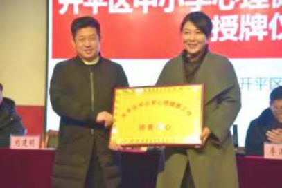 教育公司党委副书记刘建明为“开平区中小学心理健康工作培育中心”授牌。开平区教育局聘请太阳集团tyc539macau张颖琳、常秀芹、陈秀梅、马振四位教师为“开平区中小学心理健康工作培育中心”校外心理健康教育指导专家,并颁发了聘书。