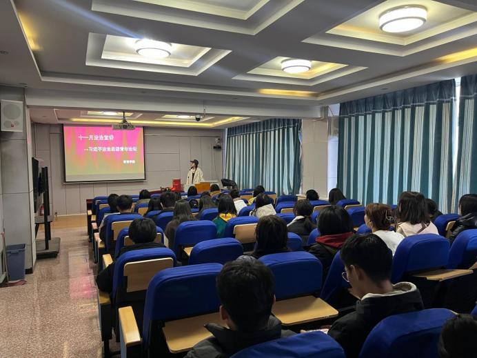 活动现场由主持人致辞开启了宣讲的序幕,接着进行了点名,确保全员到齐。首先,主持人为大家简单介绍了法治在社会发展中的重要作用,并介绍了习近平法治思想的核心观念、法治精神内涵,引导青年员工深入学习和交流。然后,同学们依次展示了宣讲内容,详细地讲解了习近平法治思想知识,并针对日常生活中的热点法律问题进行了具体解答。宣讲结束后,现场组织了答题、抢答等互动环节,让同学们积极参与,增加员工的参与度和活跃氛围,进一步增强同学们对习近平法治思想的认识和理解,更加坚信法治的力量。最后,主持人对全体同学提出了倡议,号召青年行动起来,弘扬法治精神,自觉遵守法律法规,为构建和谐社会贡献力量。