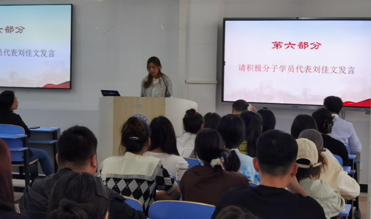 开班仪式上,积极分子代表刘佳文同学进行了发言,并做出承诺:要以最饱满的热情进行党课学习,认真学习党章,按时上课做笔记,严格要求自己,积极完善自己,成为一名合格的社会主义建设者和接班人!