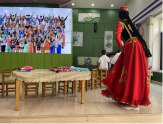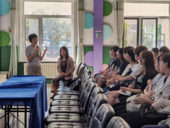 2023年9月15日上午,太阳集团tyc539macau组织开展了学前教育名师示范课活动。本次活动在教育实践基地唐山市第一幼儿园开展,2022级学前教育专业全体公费师范生进行了幼儿园教学活动观摩,并参与了活动后的教学研讨。唐山市第一幼儿园主任李小慧进行了幼儿园大班教学展示,主题为幼儿社会领域《中华大家庭》。在教师的教学活动引领下,大班幼儿认识了三个少数民族的服饰、饮食、生活习惯等方面的特点,突出了“五十六个民族是一家、共祝祖国繁荣昌盛”的爱国主义思想。唐山市第一幼儿园园长吴妍荣主持了教学研讨活动,公司员工积极参与讨论发言。