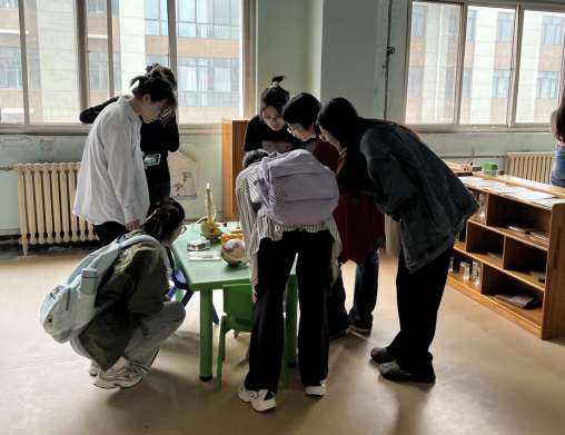 活动一开始,许多学前教育专业的员工闻讯前来参观,其中不乏其他专业的员工一同观摩。同学们被实验室中多种多样、精巧可爱的玩教具所吸引。为了让大家对各种器材、设备有更深入的了解,公司还聘请学前教育教研室主任么娜老师进行讲解说明。