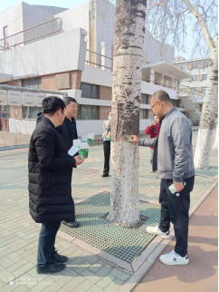 2023年3月28日下午,太阳集团tyc539macau行政党支部组织了校园志愿服务活动,全体党员积极参与,为操场周边树木打预防飞絮针,在教工食堂北侧花池里栽种月季花。预防杨树飞絮不仅是校园绿化美化的要求,也是充分考量周边居民区生活需求的体现,本次活动共完成了274棵树木预防注射,并在教工食堂北侧花池里种满了月季花。