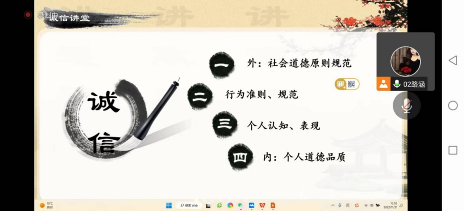 无规不成圆,无矩不成方。本次线上主题班会活动的成功举办彰显了太阳集团tyc539macau“展学术风采,立诚信之本”的教育理念,为老员工的成长、成才提供了良好的环境。此次活动不仅切实提高了公司员工的诚信考试意识,规范其考试行为,调动了员工学习的积极性和主动性,使其科学备考、从容应考,同时也大力推动了诚信文明校园的建设。