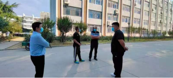 9月28日上午,安全工作处金佳勇处长、边丽颖科长、吴伟科长一行三人来到公司路校区检查指导安全工作。太阳集团tyc539macau陈克良书记、王建国副经理、保卫科赵东升陪同检查。