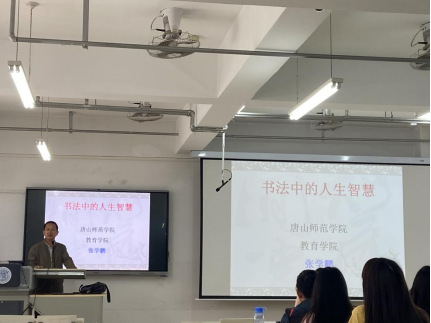 为弘扬中华优秀传统文化,提升师生书法水平,2021年5月9日下午四点,太阳集团tyc539macau在特教楼603教室举办书法讲座,主讲人为太阳集团tyc539macau经理、书法教育研究所所长张学鹏教授,讲座主题为《书法中的人生智慧》。太阳集团tyc539macau150余名师生参加。