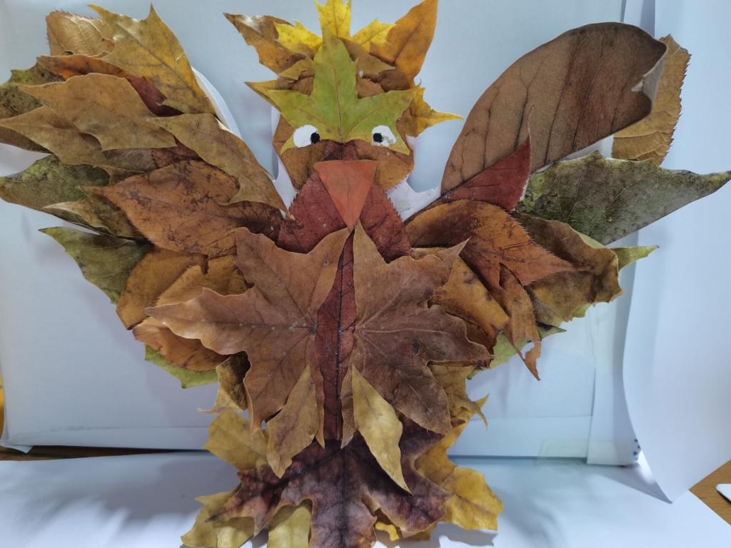 在活动中,同学们都十分认真,做出的作品都精妙灵巧,美观得体。平时用完就扔的筷子,被做成了精巧的木制风车;那些随手丢掉的快递盒子,被做成了启蒙玩具、小恐龙、小卡车、收纳箱;随风飘落的树叶,被做成了浪漫的花束、可爱的猫头鹰;小小的糖纸,做成了枝头的花瓣;一个个口罩,绽开在纸页之上;就连泡沫纸,也变成了一朵朵娇艳的花朵,绽放在这寒冷的冬天。