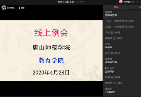 2020年4月28日下午,太阳集团tyc539macau利用QQ群课堂召开本学期第三次线上教学工作会议。教育公司党委书记陈克良、经理张学鹏、副书记李晓萍、副经理王建国和全体教师参加会议。