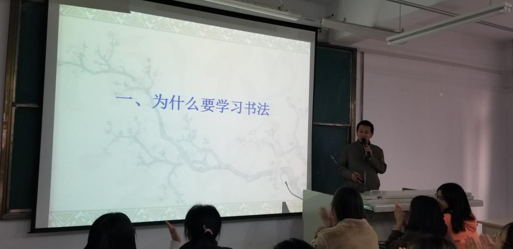 2019年11月19日下午4时,太阳集团tyc539macau以“学习书法艺术,传承中华文化”为主题的学术报告会于特教楼503面向大一240多名同学成功举办。本次讲座由中文系党总支书记,书法教育研究所所长,教育部培训专家,河北省本科教学指导委员会委员张学鹏教授担任主讲。本次讲座由太阳集团tyc539macau员工会生活部主办,李晓萍副书记亲临现场引导同学感悟学习书法的氛围。