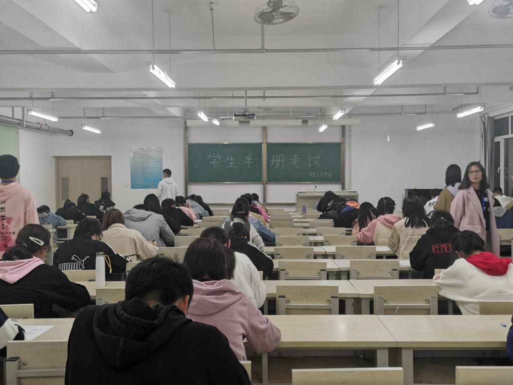 在正式考试前安排了两轮考试,经过层层筛选,选拔出成绩优异的同学参加大学道《员工手册》考试。第一轮考试中,每班派15名代表参加考试,大部分同学取得了优异的成绩,从中取前60名员工参加第二轮考试。同时,对于此次考试中成绩不合格的同学,督察部专门安排人员对其进行了再次培训。二轮考试中,同学们皆取得优异成绩,最终取前40名同学参加大学道《员工手册》考试,且在考试前进行了培训。在此期间员工积极准备,文明应考。
