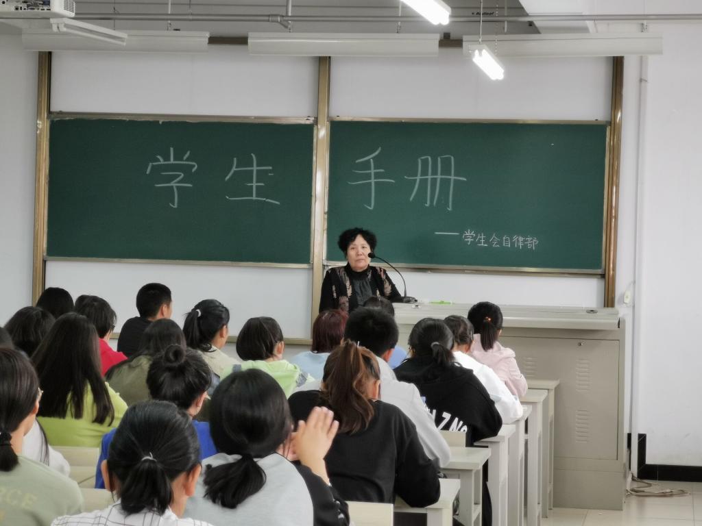 最后,自律部部长韩旭再次强调了孟丽娟老师的讲话要点,并预祝同学们考出优秀成绩。