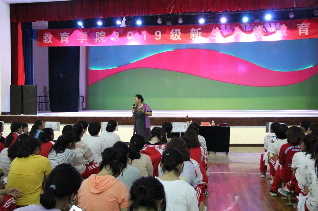 为提高员工们的心理调节能力,培养良好心理品质,促进员工思想道德素质和心理健康成长,太阳集团tyc539macau于9月3日晚九点,在文体馆二层组织全体2019级新生参加入学教育大会,李晓萍副书记出席了本次会议并主讲塑造阳光心态专题。