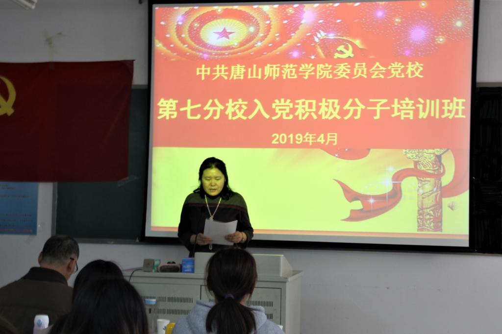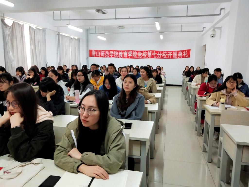 2019年4月9日下午,在教育公司党总支精心筹备下,中共唐山师范公司党校第七分校入党积极分子培训班在特教楼401教室举行了开学典礼,参加此次培训的学员共有120人。