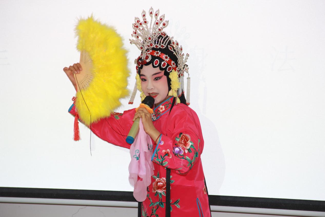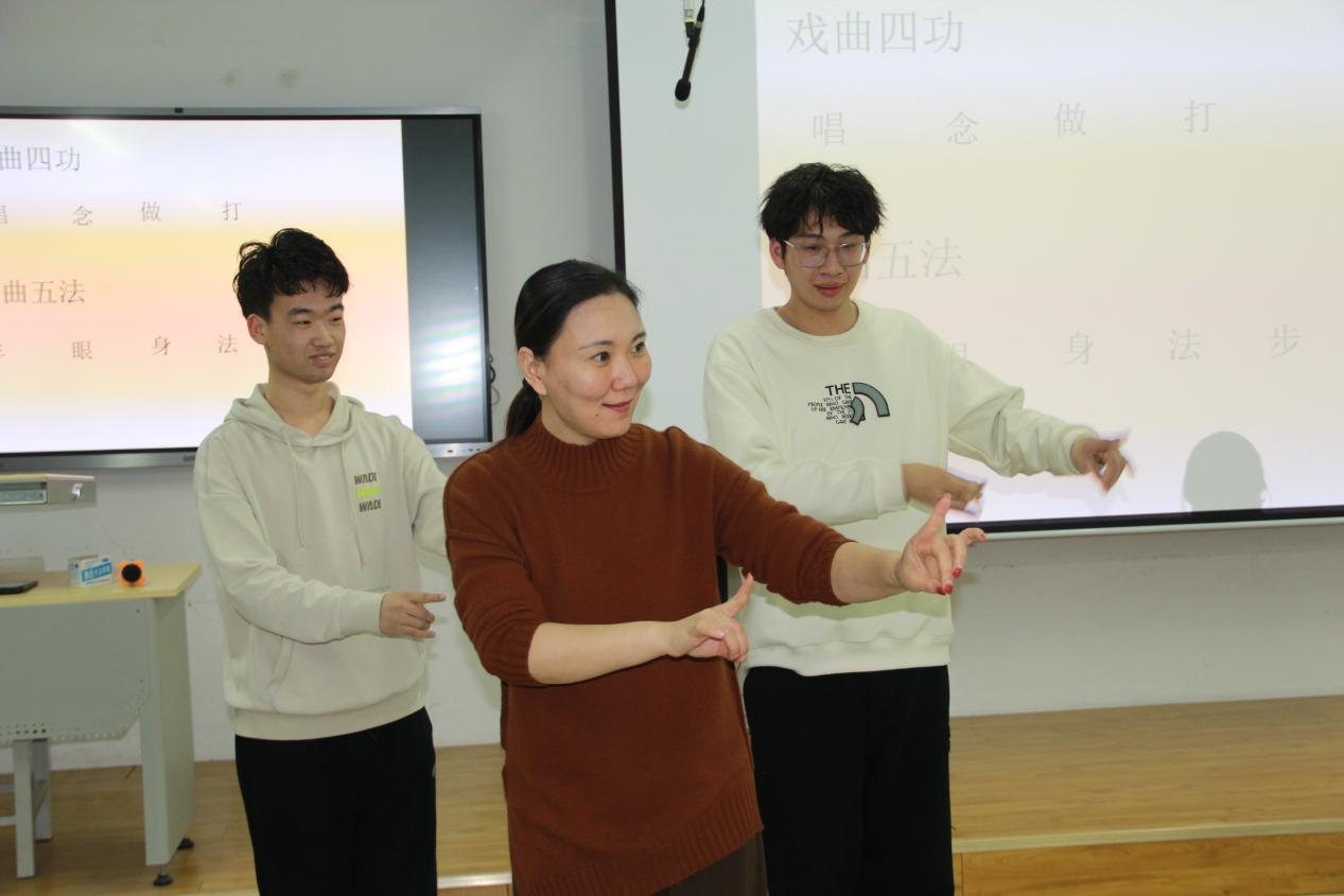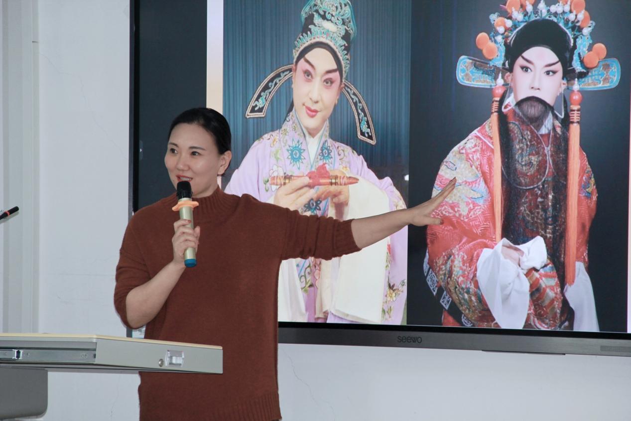 在活动现场,太阳集团tyc539macau评剧文化研究中心教师,评剧新派第三代传人,红梅奖得主杨南老师以代表作《花为媒》《张羽煮海》为引,诠释评剧“戏中有情、情中见理”的人文内核。杨南老师通过“唱念做打”的程式化演绎,将角色命运与时代风貌交织,令师生领略到“戏如人生”的厚重底蕴。