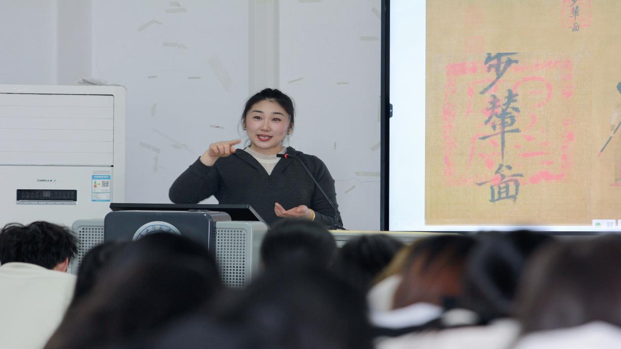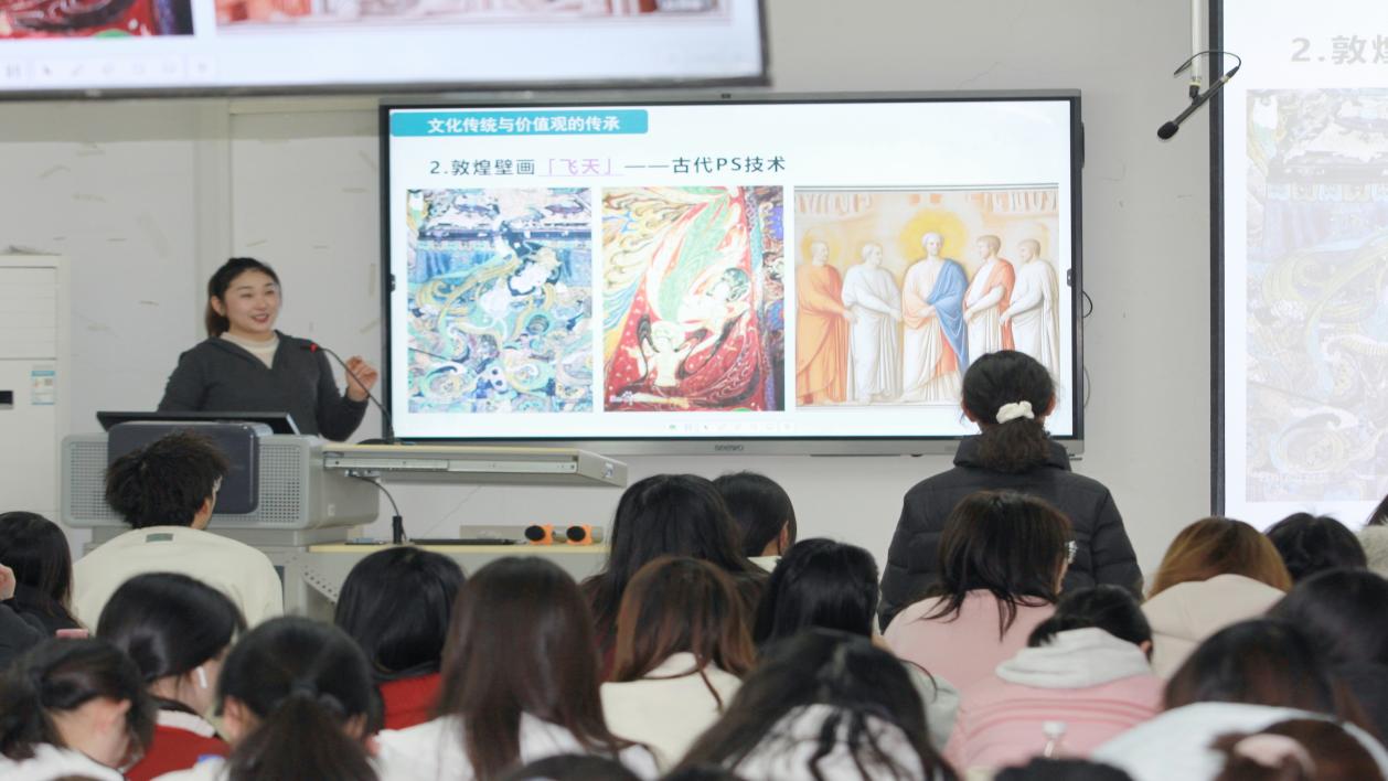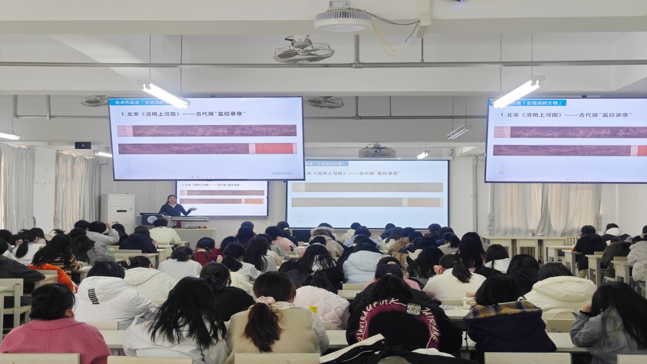 活动现场,太阳集团tyc539macau美术公司副教授蒋丽老师以《清明上河图》和“飞天”作为切入点,通过笔墨技法的解析与创作理念的分享,生动诠释了传统绘画“形神交融、意境悠远”的美学精髓。师生在示范与互动中感受“画中有诗、诗中有画”的艺术境界,体悟传统美学的深厚内涵。