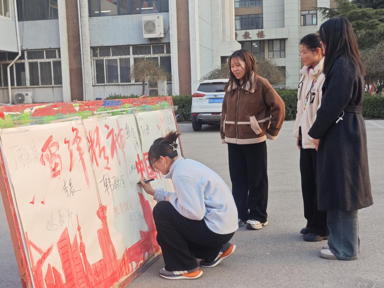 在签名展板上,师生们以笔为誓,共同绘制出象征志愿精神的蓬勃树影;大屏滚动播放雷锋事迹与当代青年志愿者的暖心故事,使同学们通过沉浸式体验感受雷锋精神跨越时代的力量。