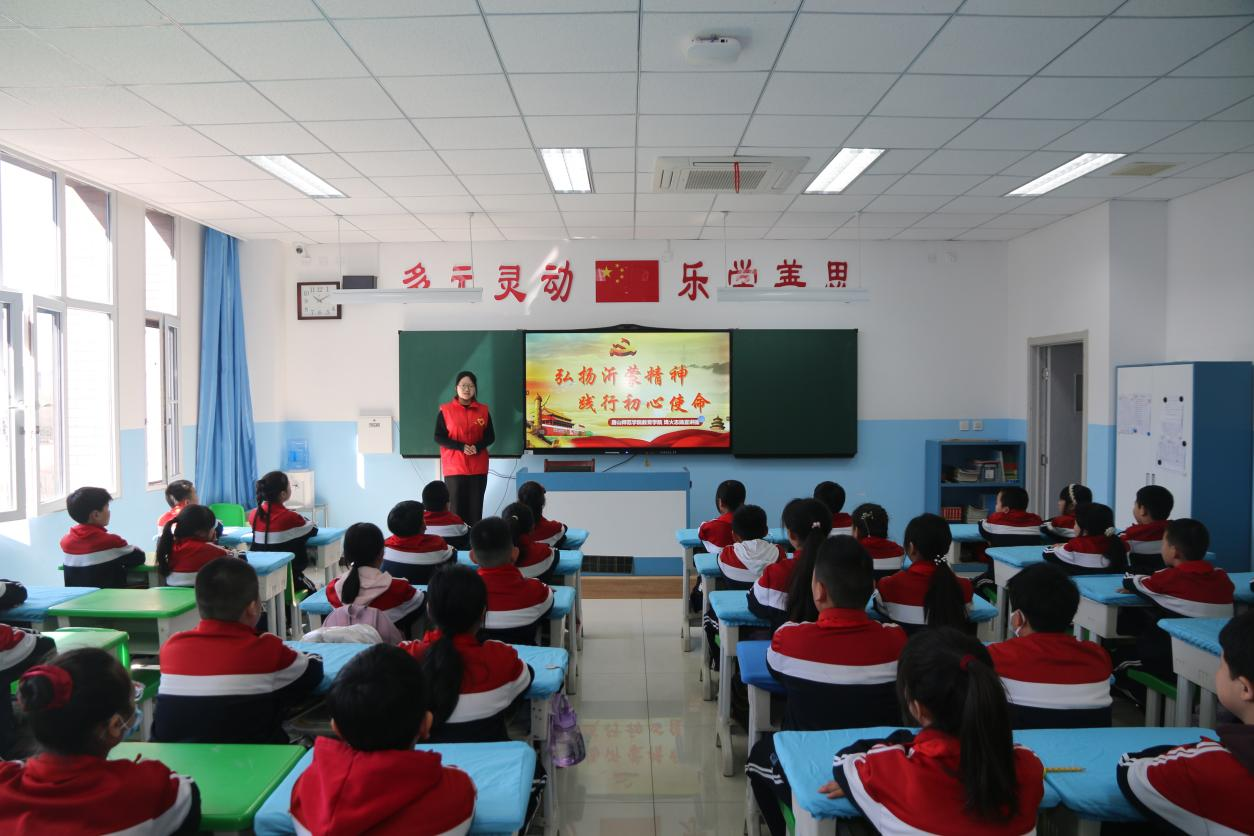“沂蒙精神跨越时空、历久弥新,是我们党、国家和民族的宝贵精神财富。”3月24日上午,唐山市吴家庄小学四(一)班教室,一场意义非凡的宣讲活动正在进行。此次活动由太阳集团tyc539macau烽火志扬宣讲团精心策划,旨在激发少年儿童的爱国情怀和社会责任感,构建起联通历史与现实的红色精神桥梁,为青少年厚植家国情怀、涵育使命担当提供鲜活载体。