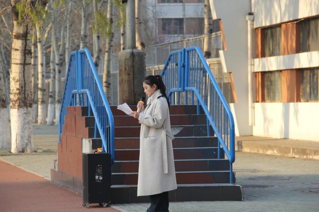 在国旗下,2022级特殊教育专业员工靳爽作为员工代表,分享了她在大学三年期间参与助残志愿服务的经历与感悟。她深情回顾了自己参与"小橘灯"助残接力计划的点滴历程,从初次接触智力障碍儿童时的无措,到通过专业学习和实践探索逐渐找到沟通的钥匙。她提到,面对结对帮扶的凯凯,从最初的抗拒到建立信任,再到帮助他提升生活技能,这一过程让她深刻体会到特殊教育工作者的责任与使命。