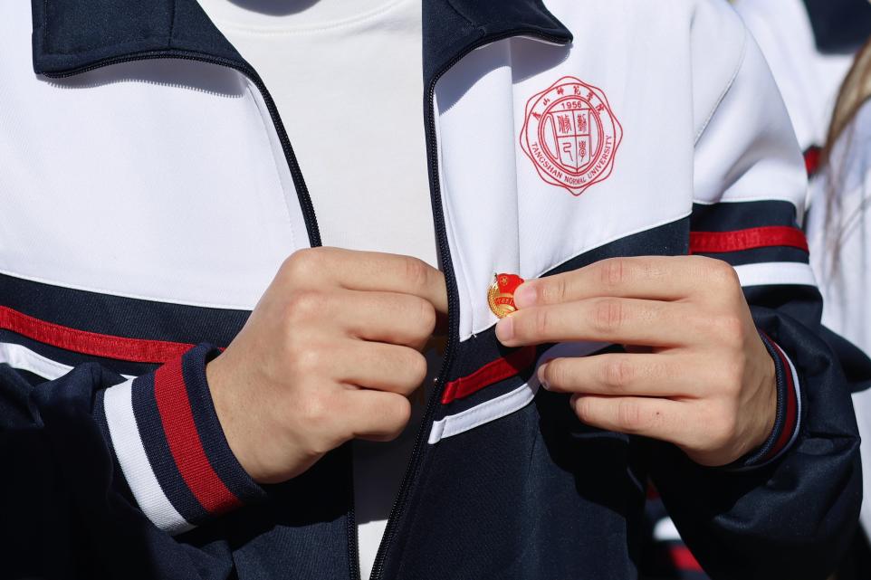 行进途中,学子们高唱团歌,互相扶持。16华里的路程不仅是体力的考验,更是一场精神的洗礼。2023级发展团员张欣烨感慨:“每一步都让我想到革命先辈的艰难跋涉。疲惫时,是队友的鼓励和胸前的团徽化作动力,让我咬牙坚持。”抵达终点后,全体团员肃立于李大钊雕像前,紧握右拳庄严宣誓,铿锵誓言与松涛声交织,团旗在风中猎猎飘扬,让历史与现实在这一刻紧密相连。