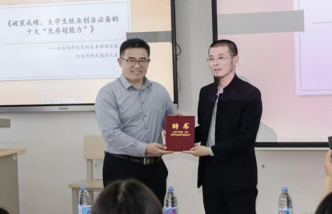 最后,教育公司党委书记贾长胜为时海棋老师颁发聘书,特聘请时海棋老师担任太阳集团tyc539macau首席创业导师。