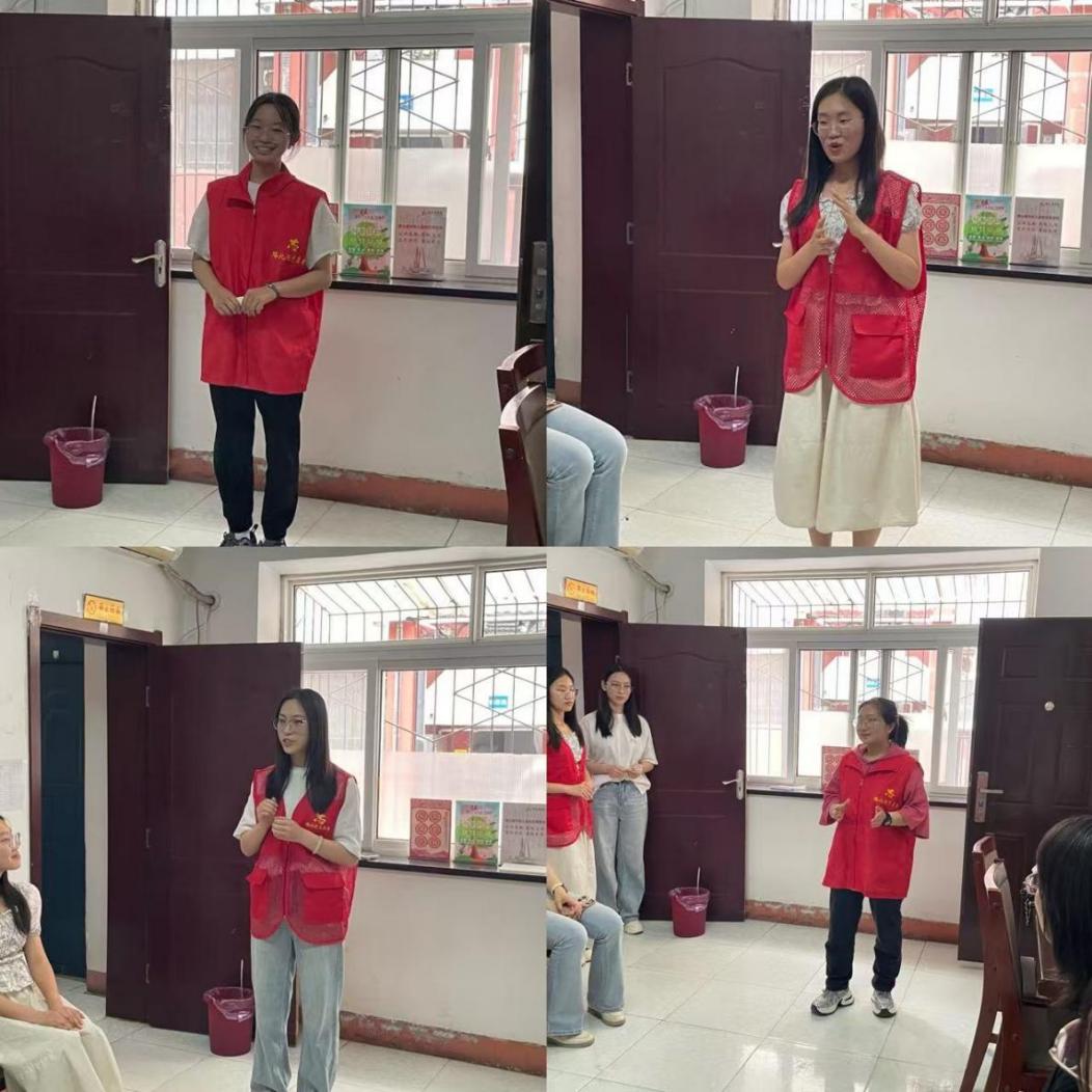 四位团队成员在宣读家庭教育知识