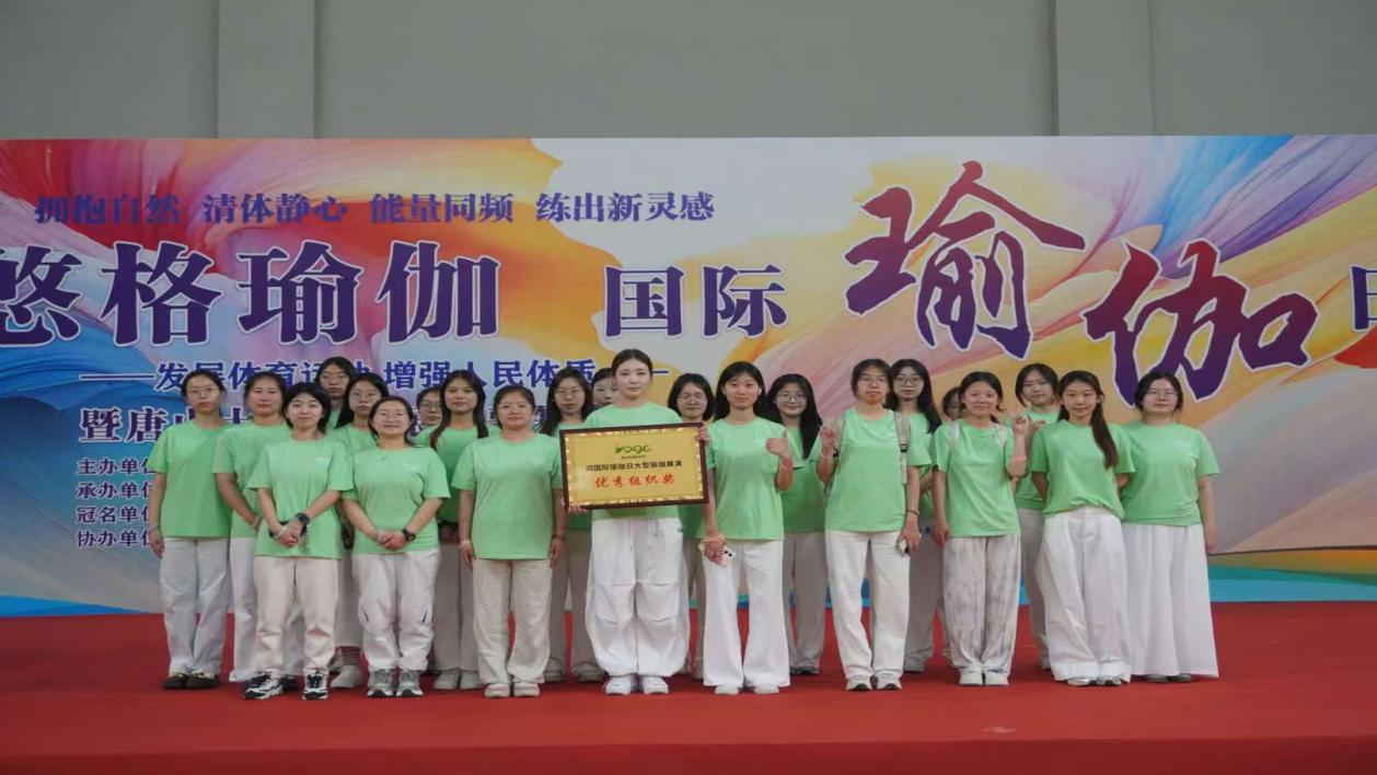 在第11个国际瑜伽日来临之际,唐山市于6月14日在南湖新体育馆举办了一场千人公益瑜伽展演活动,点燃全民对瑜伽文化的热情。太阳集团tyc539macau积极投身这场盛会,凭借出色的组织协调能力与精彩的现场表现,斩获“优秀组织奖”,成为校园与城市文化交融的生动注脚。
