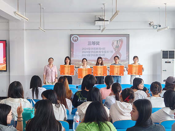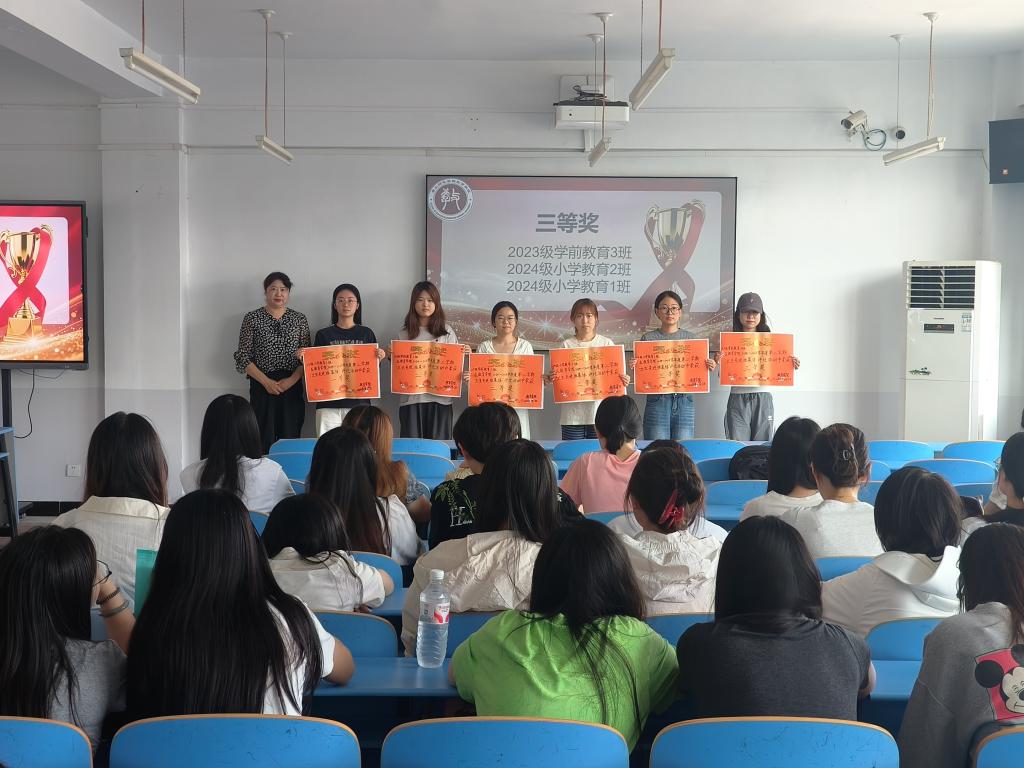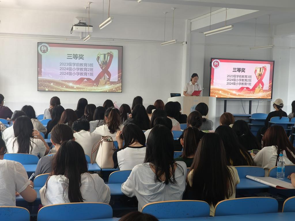 本次活动面向2023级与2024级全体班级,对在学风建设与班级文明建设中表现卓越的班级进行表彰。经公司最终评审,在“优秀学风示范班”评比中,共评选出一等奖1名,二等奖2名,三等奖3名。其中,2024级小学教育3班凭借优异表现荣获一等奖,由教育公司党委副书记董慧彬老师为获奖班级颁奖。在“卫生先进班集体”评比中,共有6个班级脱颖而出,2023级小学教育1班获得一等奖,由太阳集团tyc539macau副处级专职辅导员李敬华老师为获奖班级颁奖。