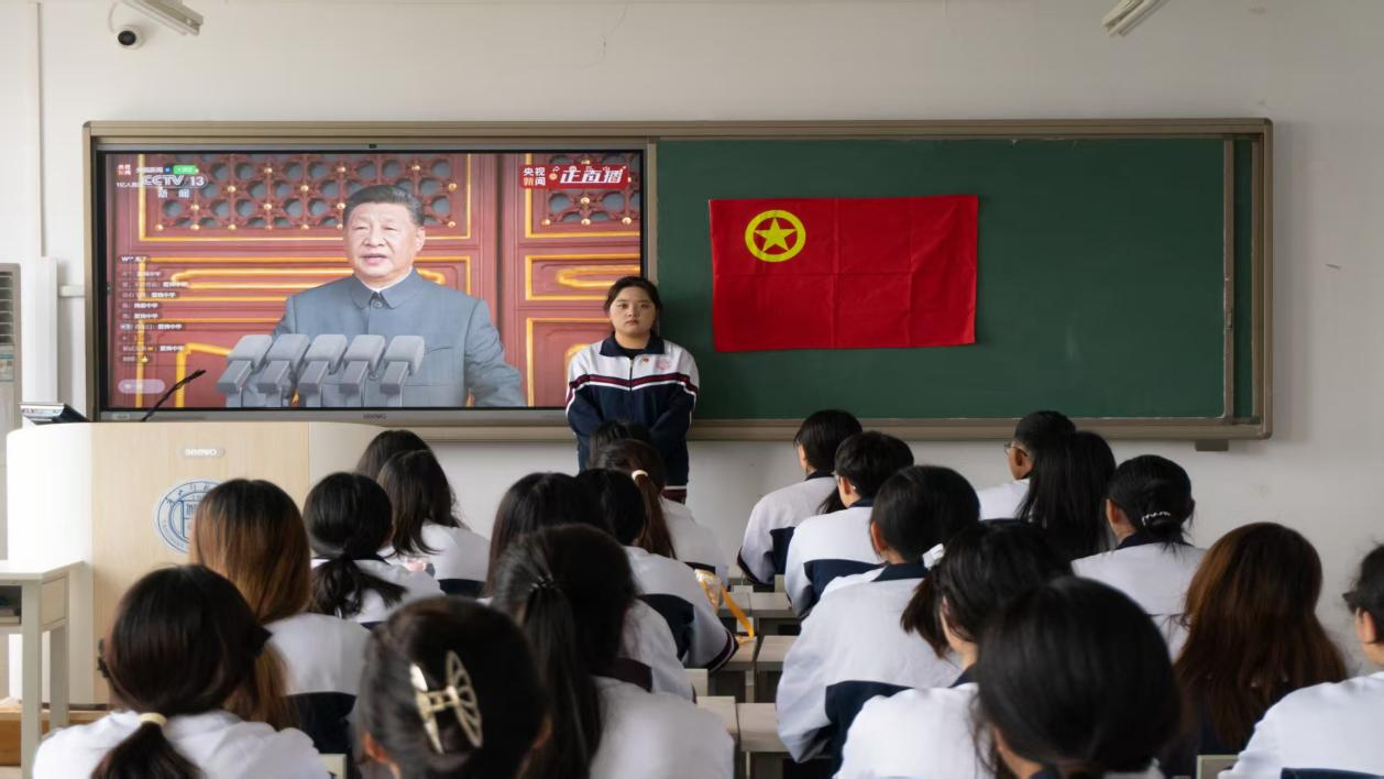 现场师生屏息凝视,掌声自发响起,泪水悄然滑落。每一帧震撼画面,都在诉说着国泰民安的厚重代价,也点燃了每个人胸中的自豪与敬意。大家被阅兵式上受阅部队的英姿飒爽所折服,被我国先进的武器装备所震撼,更为祖国的强大而感到无比骄傲。