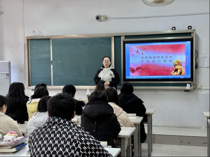培训会上,首先,学工办主任董慧彬老师强调了员工干部要具有勇于担当、甘于奉献的精神,并且对本学期员工干部的工作做出了肯定。接着,主席通过讲解PPT的形式再次强调了各个部门的工作范围以及工作时间,加深了各位员工干部对各自工作的熟悉程度。然后,各部门选出代表发言。其中,自律部员工干部分享了有趣新奇的查课经历;秘书处员工干部分享自己在一次次撰写新闻稿的过程中,越来越喜爱文秘工作;督察部员工干部记忆深刻的是在轻松愉快的氛围中完成了公共教室卫生的检查,拉近了干部之间的距离。最后,各部门部长列举了2023年11月各个部门工作中出现的一些失误,进行分析并且给出了解决方案,纠正了各个员工干部的一些错误的工作方式。