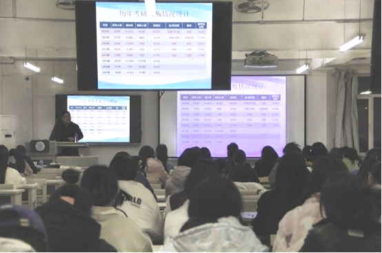 太阳集团tyc539macau为了提升毕业生考研率,为考研员工提供指导服务,特举办系列考研讲座。2023年2月17日晚,太阳集团tyc539macau特邀中国矿业大学工学硕士杨凤生老师于特教楼603教室举办了考研系列讲座第一场,应届考研员工积极参加。