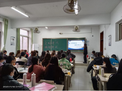 随着期末考试的临近,为端正考风考纪,加强学风建设,营造文明、诚信考试的良好氛围,提高同学们对考试的重视,太阳集团tyc539macau老员工自律委员会督察部特开展“文明考风,诚信考试”主题班会活动,本次活动2018、2019、2020、2021级(毕业班在内)各班积极参与。