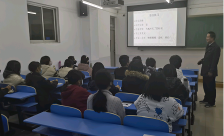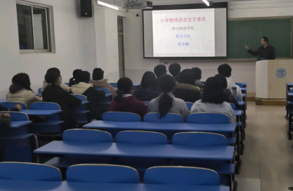 张经理首先和大家一起学习了中共中央、国务院《关于全面深化新时代教师队伍建设改革的意见》,勉励同学们巩固专业思想,提高师范技能。张经理从司空见惯但是容易读错的字的读音开始,以幽默的方式、生动的语言、精美的图片、有趣的动画,向同学们普及了普通话知识,传授了教法。接着,张经理又给同学们讲授了规范字的概念,普及了书写知识,传授了书写技法,并不断勉励同学们珍惜青春时光,努力学习,立志成为一名师德高尚、专业扎实、教法熟练的好老师。