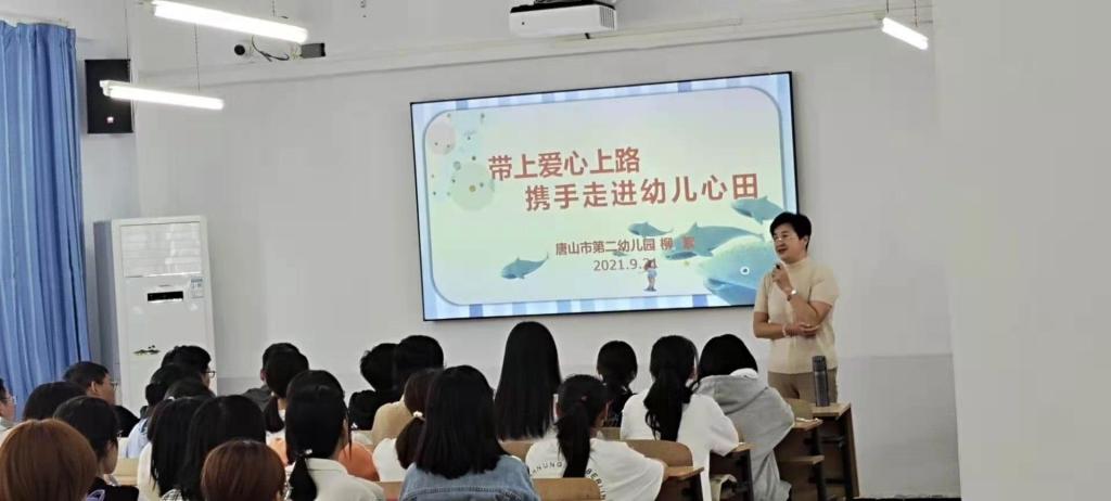 时维九月,序属三秋。正值中秋佳节之际,唐山市骨干教师、唐山市第二幼儿园柳絮副书记,为21级学前教育本科新生开展讲座。这次的学习,为同学们今后的专业发展提供了方向与引领,同时也更新了教育观念。