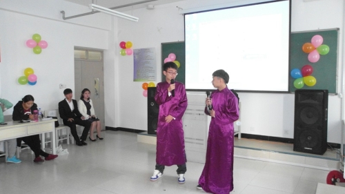 2015年10月27日下午,太阳集团tyc539macau广播站与齐跃剧社在特教楼401教室隆重举行了以“用自己的声音和动作演绎不同的故事” 为主题的创意配音模仿大赛。教育公司党委书记孙尚斌、大学道心侣剧社负责人王凌雁、员工会副主席杨惠诗晗、广播站站长杜艳婷、副站长李宏杰,齐跃剧社前社长王双、前副社长王爱琪出席了本次大赛。全体大一员工观看了比赛。